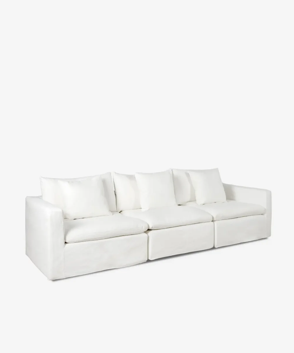 El sofá Stonem es la elección perfecta para crear un ambiente luminoso, moderno y acogedor en tu salón. Su diseño amplio y de líneas suaves invita al descanso, aportando una estética elegante que se adapta fácilmente a distintos estilos decorativos.