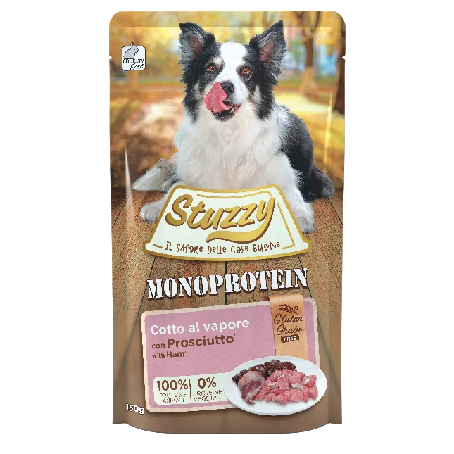Stuzzy Monoprotein Prosciutto è il pasto perfetto per garantire una dieta sana e gustosa al tuo cane, mantenendo il suo benessere e soddisfacendo il suo palato.