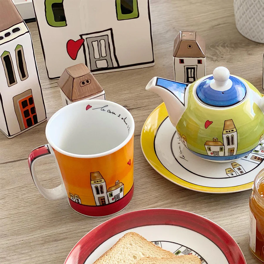 Le tazze mug della collezione “Le Casette” di Egan sono un’aggiunta affascinante e funzionale alla tua esperienza quotidiana del caffè o del tè. Realizzate in porcellana decorata con la fantasia di un gruppo di casette, queste tazze mug sono progettate per portare gioia e vivacità alla tua tavola.