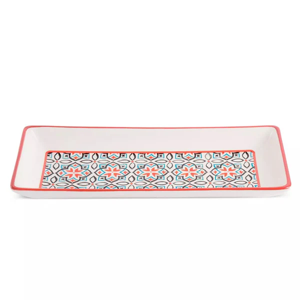 Il vassoietto rettangolare della linea Majorica di Egan è un’elegante aggiunta alla tua tavola, ideale per servire dolcetti o antipasti con stile e raffinatezza. Realizzato in ceramica decorata, questo vassoio porta i colori e le tradizioni delle terre bagnate dal mare del sud direttamente sulla tua tavola.