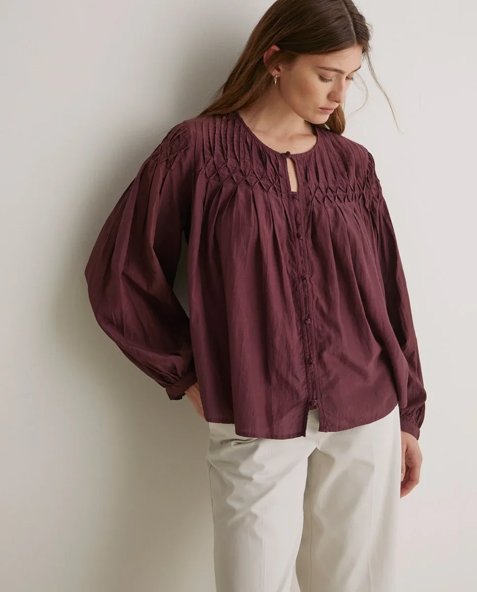 SaleScegli Questo prodotto ha più varianti. Le opzioni possono essere scelte nella pagina del prodottoBlusa plissettata in cotone color melanzana